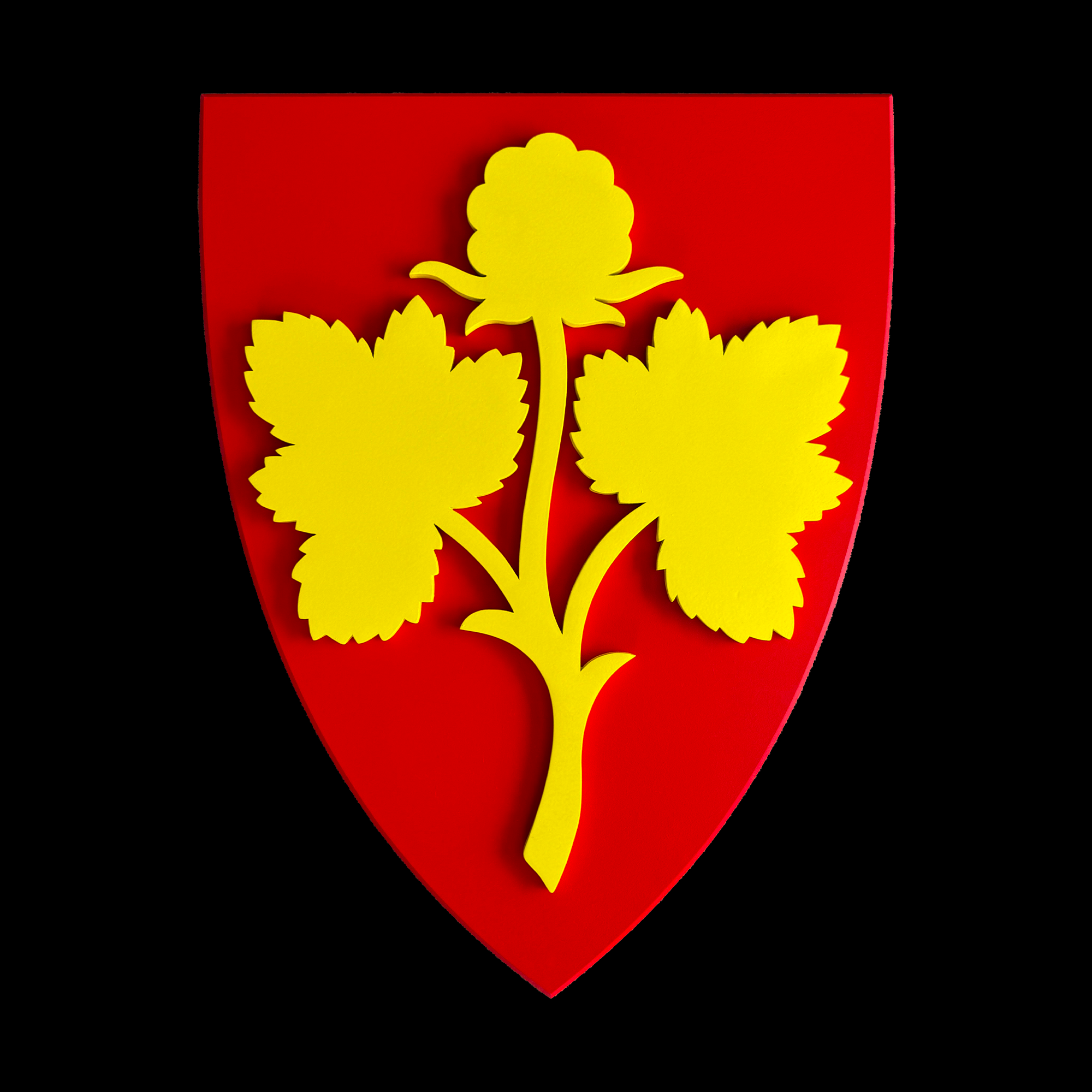 The coat of arms, officially granted in 1986, carries deep symbolism. It shows a golden cloudberry plant with two leaves and one berry, set against a vivid red background. The cloudberry, a rare fruit of the northern marshes, represents both the richness of the local nature and the community’s deep connection to the land. For centuries, cloudberries have been valued in Sámi and Norwegian culture, used in traditional dishes and treasured as a delicacy.